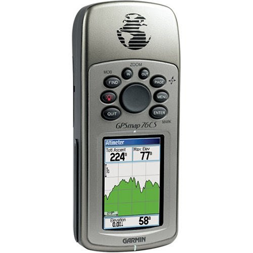 Waas-enabled, 12 Parallel Channel Gps Receiver. Built-in Quad-helix Antenna With Remote Antenna Capability. 115 Mb Internal Memory For Loading Mapsource Detail, Including Marine Cartography. Usb Connectivity For Quick Chart & Map Downloads. Sunlight-readable Display With 256-color Transreflective Tft Display (1.5" W X 2.2" H; 2.6" Diagonally); Color Operating System With New Look-&-feel. Weighs 7.6 Ounces (with Batteries). Led-backlit Display & Keypad. Up To 30 Hours Battery Life (uses 2 Aa Alkaline Batteries). Permanent User-data Storage; No Memory Battery Required. Includes A Built-in Americas Autoroute Basemap With Auto-routing Capabilities, Including Highways, Exits & Tide Data (u.s. Only). Internal Memory Is Pre-loaded With A Marine Point Database. Water-resistant To Iec 60529 Ipx7 Standards (can Be Submerged In 1 Meter Of Water For 30 Minutes); Rugged & Waterproof Housing That Floats. 1000 User Waypoints With Name & Graphic Symbol; 50 Reversible Routes. Position Formats Include Lat/lon, Utm, Loran Tds, Maidenhead, Mgrs, User Grid & More. Audible Alarms For Anchor Drag, Arrival, Off-course, Proximity Waypoint & Clock. Large-numbers Option For Easy Viewing; Dual-position Display Mode. Trip Computer Provides Odometer, Stopped Time, Moving Average, Overall Average, Total Time, Max. Speed & More. 10,000 Point Automatic Track Log; 20 Saved Tracks Let You Retrace Your Path In Both Directions. Built-in Celestial Tables For Best Time To Fish, Plus Sun & Moon Calculations. Compatible With Most Mapsource Products Including Bluechart, City Select, U.s. Topo 24k, U.s. Topo & Recreational Lakes With Fishing Hot Spots. 6.2" H X 2.7" W X 1.4" D Unit Dimensions. Features Electronic Compass & Barometric Altimeter.Garmin GPSMAP 76CS 1.5-Inch Waterproof Marine GPS Specifications